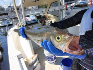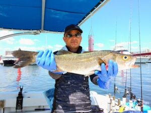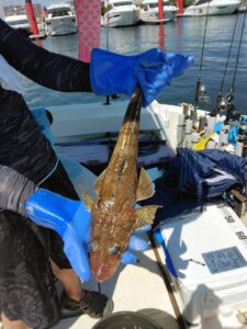 60㎝以上はある、タイとスズキ、とても大きなサバ、アジ、ワニゴチ。 そして今夏初めて給油桟橋で見た大量のタチウオ。