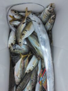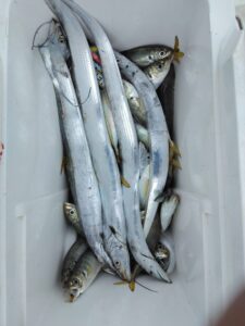 岩屋方面でもアジが入れ食いで、タチウオも釣れていました。 前の時よりもだいぶん大きくなっていますね。