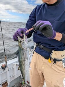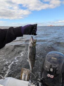 なんと、始業時間が迫っていて大急ぎでマリーナに戻る為に仕掛けを引き上げていったところ、3匹のサゴシが釣れておりました🐟🐟🐟