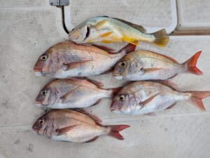 いつも釣果を期待されているこちらのお写真の船は、プレッシャーにも負けず(いつもすみません・・・)タイやニベを釣ってこられていました🐡