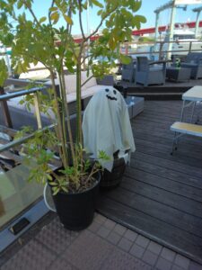 西宮マリーナのクラブハウスのあちこちに、ハロウィンの飾りを置いて楽しんでいます。